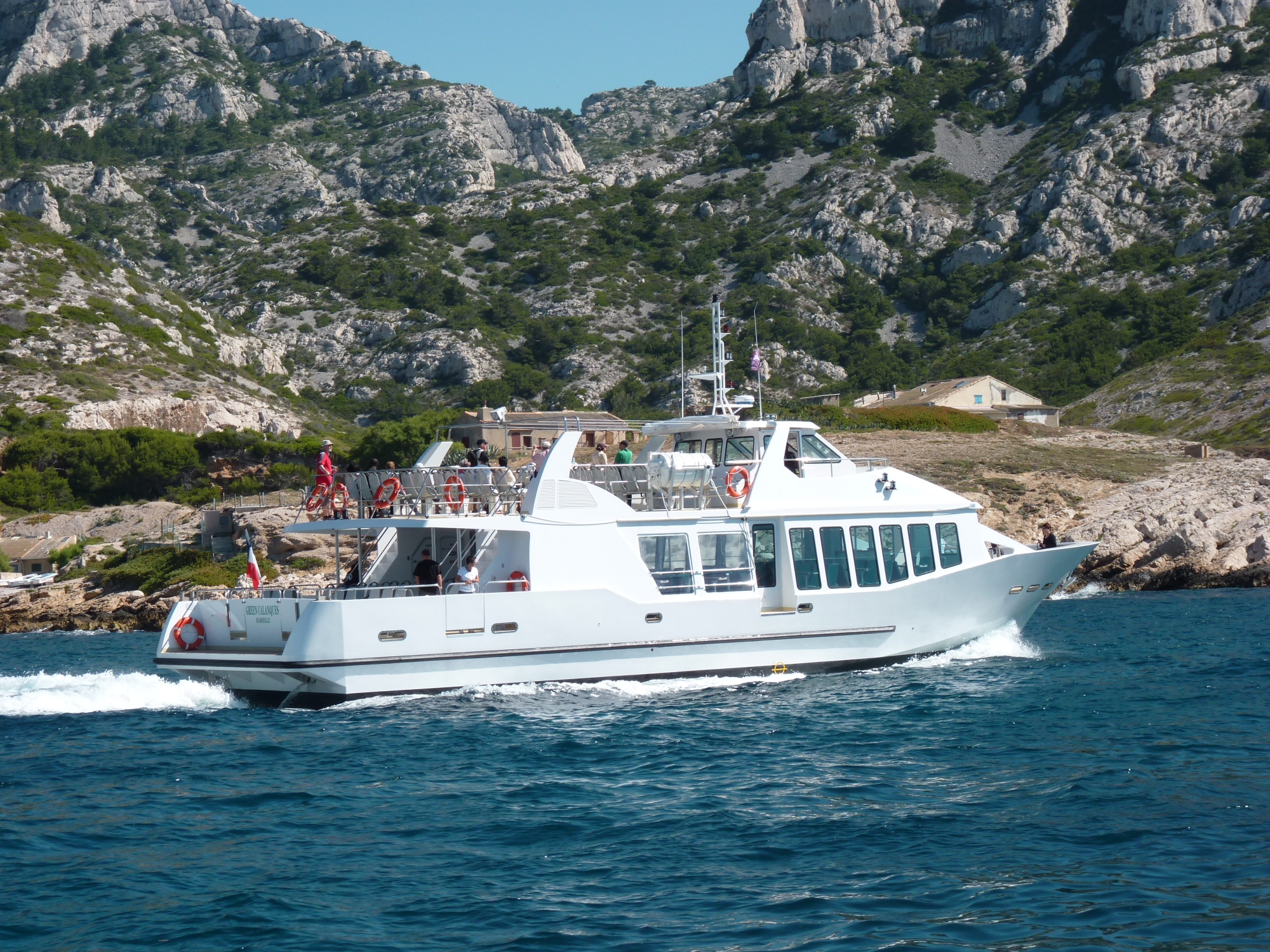 Découvrez les calanques de Marseille jusqu'à la baie de Cassis. Le bateau longe la rade de Marseille en passant par les îles situées face à Marseille, l’Archipel du Frioul et le Château d’If jusqu’au Cap Croisette, porte d’entrée des Calanques. Le bateau rentre dans chacune d’elles, jusqu’à la Baie de Cassis.